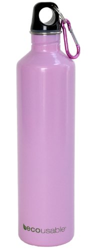 EcoUsable 33 oz. stainless steel water bottles were recently featured on Martha Stewart show as a healthy and eco-friendly alternative to plastic and aluminum bottles. Comes with a non-leaching with polypropylene #5 twist top cap and matching carbiner. Fits in most bike and car cup holders. Interchangeable sport caps are available.