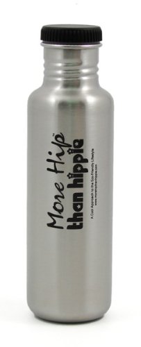 The Same Great Klean Kanteen Stainless Steel Water Bottle at an Extra Low Price The More Hip Than Hippie Stainless Steel Water BottleThis is a reusable, light weight, risk-free stainless steel container that does not leach toxins into its contents. Recent studies link toxins such as bisphenol-a (BPA) to breast cancers and reproductive mutations. Plastics migrate carcinogens including BPA during regular use, exposure to heat, and especially after cleaning. Calling All Hipsters! Whether you're a long-time listener or a newbie to the program, show that you're More Hip Than Hippie™ with this stainless steel water bottle. Hey, you're taking steps and your lightening your footprint. You're using less plastic and recycling more. And while you're avoiding bisphenol-a, why not show off your favorite podcast? It great for water, juice, tea, and even beer (it's like a mini-keg!). Then, when your friends ask about the logo, tell them about your favorite eco-funny podcast, More Hip Than Hippie. Perfect for Hikers, Bikers, and Hipsters This stainless steel water bottle is perfect for hikers, bikers, kids and anyone who keeps themselves hydrated. Rinse the water bottle after use to keep it clean. This canteen works for cold or hot beverages (Be careful! Hot beverages can make the bottle too hot to handle). It's slim design fits into most bottle holders. Choose Your Cap! This 27oz stainless steel water bottle comes with a choice of a Sports Cap, Flat Cap, or Loop Cap. Select your choice from the pull down menu above to view each cap and price. The Sports Cap is made from Polypropylene #5 (PP#5) which has no known leaching characteristics. Both the Flat Cap and the Loop Cap are stainless steel lined so that no plastic comes in contact with your beverage. Made by Klean Kanteen The More Hip Than Hippie water bottle is made by Klean Kanteen so you know that the qu